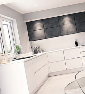 ‘Oooh, that’s lovely,’ Tabitha cooed, running her hands along the cool marble benchtop. ‘Does this come in pink?’